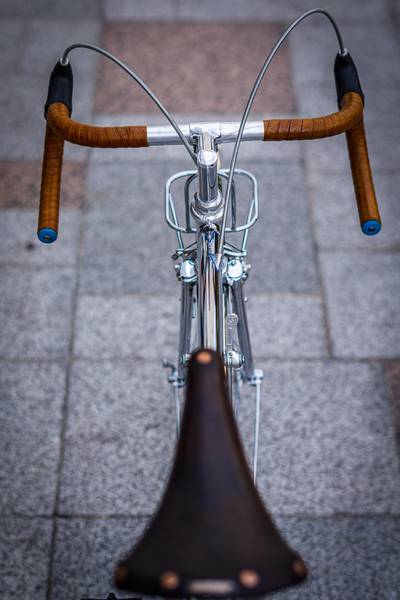 Cadre en tube Reynolds 725 4/10 ème avec passage de câble intérieur, jeu de direction Stronglight, roulement de pédalier TA Axix Light potence Alex Singer gravée, cintre Philippe Professionnel origine avec guidoine gomme laque, tige de selle dural, porte bagage avant Poly Carré Alex Singer Garde-boue Honjo avec losange Alex Singer, tasseaux de freins brasé et butée de gaine Alex Singer, rayonnage Inox des roues, serrage de selle Campagnolo, roue libre Régina Extra, Chaine Renold origine. Pédalier Campagnolo Record Triple polis, cales pieds Christophe chromes Pédales Campagnolo Super Record, Moyeux Campagnolo Record et jantes Super-Champion ; Ensemble de derailleurs manettes au cadre Simplex Super L.Juy, porte bidon TA Chromé, pompe AD-Hoc